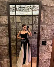 Irradia elegancia atemporal con el vestido largo Maria, diseñado para que tus noches de verano sean inolvidables . Este impresionante vestido blanco y negro presenta un corpiño ceñido con tirantes finos que se extiende hasta una espectacular falda bicolor que crea un movimiento elegante a cada paso.