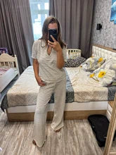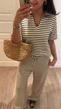 Mejora tu armario con nuestro conjunto de punto a rayas para mujer , que incluye un top holgado de cuello abierto y pantalones anchos de cintura alta. Diseñado para la comodidad, la practicidad y un estilo atemporal , este conjunto de dos piezas es perfecto para días soleados, viajes o momentos de estilo casual y chic.
