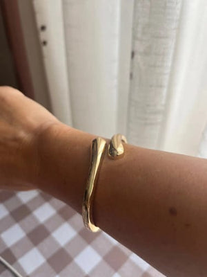 Realza tus accesorios con la Pulsera Fluida Escultural , un brazalete audaz y de alta costura diseñado para destacar. Inspirada en el arte contemporáneo y las formas orgánicas, esta pulsera envuelve la muñeca como metal líquido. Su acabado suave y brillante y su flujo asimétrico aportan un toque elegante y escultural a cualquier atuendo.