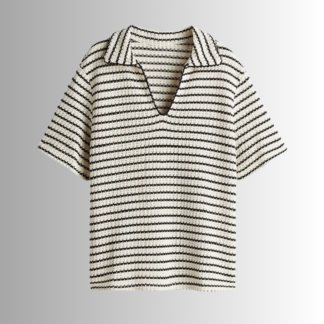 Its lightweight, breathable knit ensures all-day wearability, while the minimalist striped pattern adds just the right touch of sophistication.
