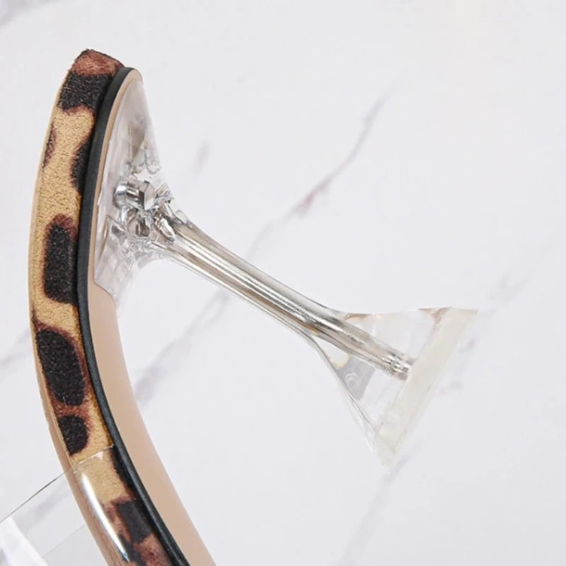 Make a bold impression with the Diva Leopard Heels , where fierce fashion meets minimalist elegance. Featuring a striking leopard print base, a transparent open-toe band, and a 9cm lucite heel, these shoes are made to turn heads.