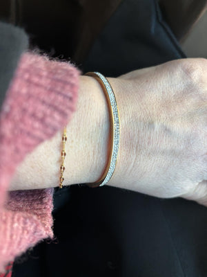Timeless elegance: gold bangle adorned with sparkling zirconia stones.